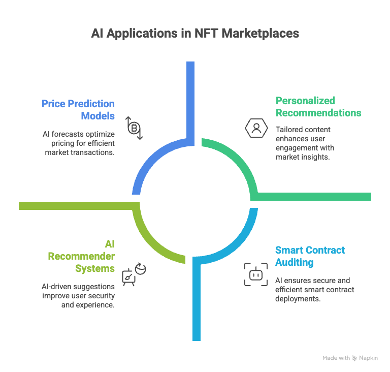 AI can automate time-consuming operational processes within NFT marketplaces. From verifying transactions to moderating content and managing liquidity, AI increases efficiency while minimizing errors.